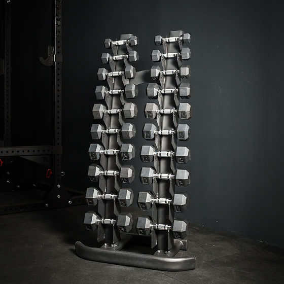 Product Summary - Our front facing stands are the perfect solution for organised, space-efficient storage of either 8 or 10 pairs of hex or commercial dumbbells....
